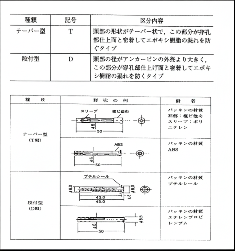 注入口付アンカーピンの種類とその形状については上記の表を見れば分かりますので、ここでは、典型例をもってこのアンカー一般の構造上の問題点を、以下で考えてみることにします。