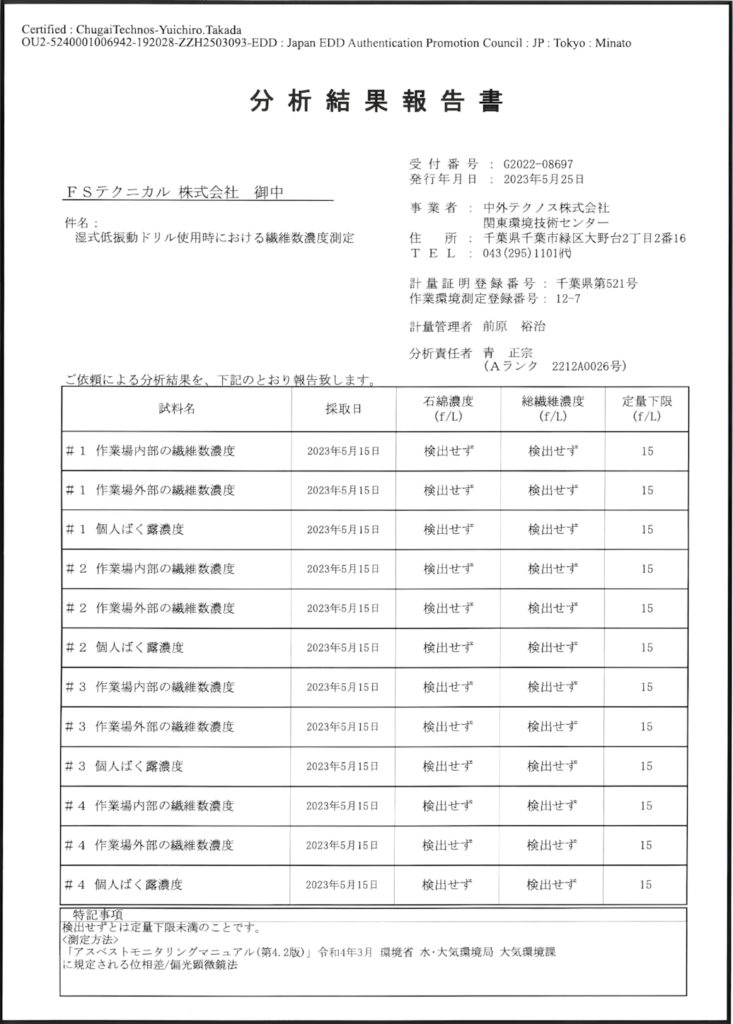 ※湿式低騒音ドリルはダイヤモンドビットを使用していますので、穿孔長は、ダイヤモンドビットの消耗分を考慮しています。